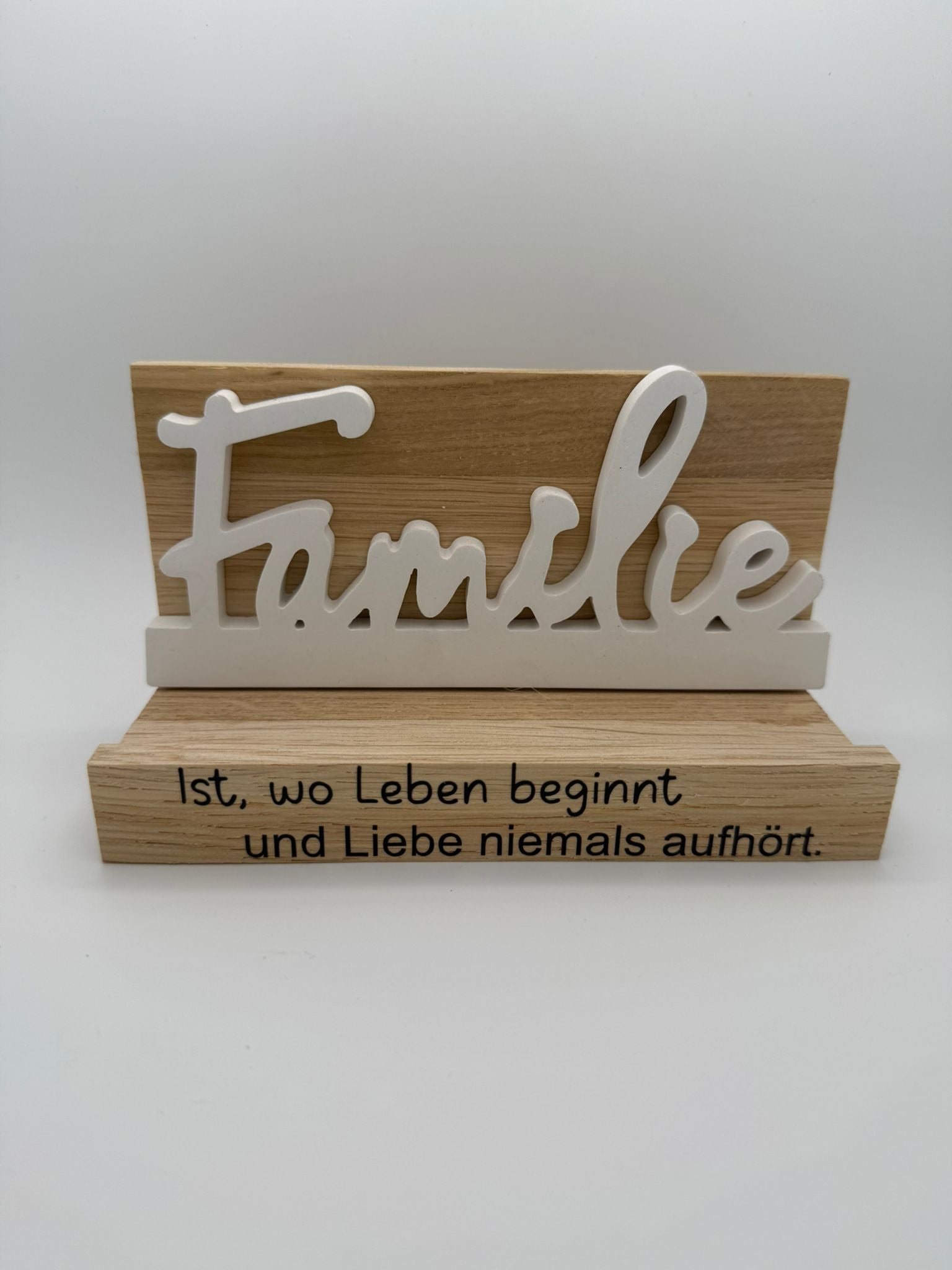 Familie ist mehr als nur ein Wort – sie ist ein Gefühl. Dieses liebevoll gestaltete Holzbrett trägt den handgegossenen Schriftzug „Familie“ aus Beton und den Spruch: